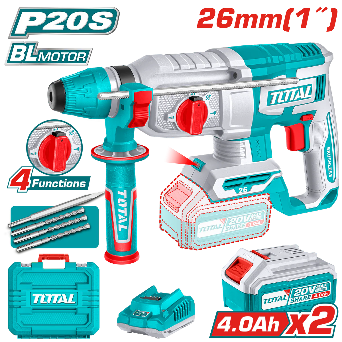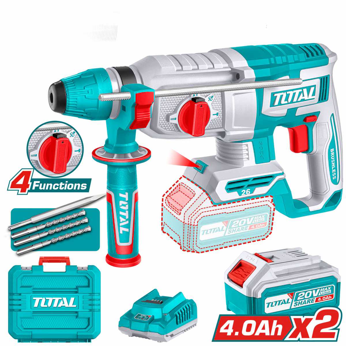Total Cordless rotary hammer 20V 26mm